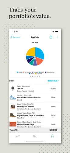 上传你的运动鞋、街头服饰、收藏品、手表或手袋收藏,并追踪其价值的变化